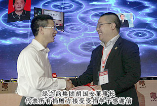 綠之韻集團(tuán)胡國(guó)安董事長(zhǎng)本次大會(huì)期間接受媒體采訪時(shí)表示,光彩事業(yè)是一項(xiàng)以扶貧開(kāi)發(fā)為主題的光榮事業(yè)。綠之韻一直積極承擔(dān)企業(yè)的社會(huì)責(zé)任,通過(guò)參與各類(lèi)公益慈善活動(dòng)回報(bào)社會(huì)。希望通過(guò)自身的作為能夠帶動(dòng)更多的企業(yè)、更多的人關(guān)心、關(guān)注、關(guān)愛(ài)社會(huì)弱勢(shì)群體。綠之韻愿同各企業(yè)團(tuán)體,積極探索社會(huì)慈善與自身扶貧濟(jì)困、利益人群、服務(wù)社會(huì)優(yōu)良傳統(tǒng)相結(jié)合的方式,為和諧社會(huì)的建設(shè)作出更大的貢獻(xiàn)!