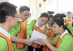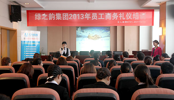 2013年4月27日—28日,綠之韻集團(tuán)聯(lián)合長沙立人教育組織全體員工開展了為期兩天的“凝心聚力、團(tuán)結(jié)奮進(jìn)”員工拓展訓(xùn)練營活動(dòng)。此次活動(dòng),分為全員商務(wù)禮儀培訓(xùn)會(huì)和戶外拓展訓(xùn)練兩個(gè)階段進(jìn)行。27日,為豐富員工的業(yè)余生活,進(jìn)一步提升員工形象氣質(zhì),展示員工積極向上的精神風(fēng)貌,綠之韻集團(tuán)2013年員工商務(wù)禮儀培訓(xùn)會(huì)在集團(tuán)總部六樓會(huì)議廳舉行,國際高級(jí)禮儀培訓(xùn)師周曉莉?yàn)槿w員工作了“有‘禮’走遍天下”講座,系統(tǒng)地講授了儀容、儀表、氣質(zhì)提升、人際溝通技巧、餐宴禮儀等知識(shí),員工受益匪淺,反響強(qiáng)烈。