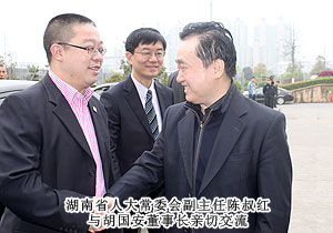 會議結(jié)束后,與會省市領(lǐng)導(dǎo)和胡國安董事長進(jìn)行了親切的交談。胡國安董事長向各位領(lǐng)導(dǎo)簡單匯報了目前集團公司生產(chǎn)經(jīng)營工作情況和2013年發(fā)展規(guī)劃,并表示綠之韻集團能夠取得今天的成績,這得益于多年來各級領(lǐng)導(dǎo)的親切關(guān)懷和精心指導(dǎo),得益于社會各界人士的鼎力支持。2013年是綠之韻下一個十年的開局之年,“中國夢?綠之韻夢”已經(jīng)成為所有綠之韻人的行動指南和動力源泉,綠之韻集團將在各級領(lǐng)導(dǎo)的指導(dǎo)和支持下,搶抓機遇,攜夢想而奮斗,為湖南經(jīng)濟社會發(fā)展作出自己更大的貢獻(xiàn)!