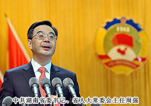 1月29日,湖南省政協(xié)十一屆一次會(huì)議選舉產(chǎn)生了十一屆省政協(xié)主席、副主席、秘書長和常務(wù)委員候選人名單。陳求發(fā)當(dāng)選湖南省政協(xié)第十一屆委員會(huì)主席,武吉海、袁隆平、劉曉、王曉琴、楊維剛、張大方、歐陽斌、童名謙、賴明勇當(dāng)選十一屆湖南省政協(xié)副主席。湖南省政協(xié)十一屆一次會(huì)議在圓滿完成各項(xiàng)預(yù)定議程后,于1月29日下午在湖南省人民會(huì)堂勝利閉幕。另外,湖南省第十二屆人民代表大會(huì)一次會(huì)議繼續(xù)相關(guān)預(yù)定議程,大會(huì)選舉周強(qiáng)為湖南省人大常委會(huì)主任,徐守盛當(dāng)選湖南省人民政府省長,李友志、何報(bào)翔、張碩輔、陳肇雄、黃蘭香、盛茂林、韓永文當(dāng)選湖南省人民政府副省長。