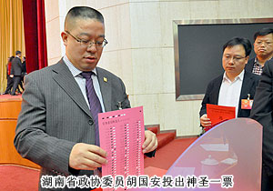 綠之韻集團(tuán)董事長胡國安,繼擔(dān)任省十屆政協(xié)委員之后再次當(dāng)選省十一屆政協(xié)委員。承載著7100萬三湘兒女的期盼和重托,胡國安委員同來自全省各族各界、各條戰(zhàn)線的700多名省政協(xié)委員一起齊聚長沙,積極履行政治協(xié)商、民主監(jiān)督、參政議政職能,共商科學(xué)發(fā)展、富民強(qiáng)省大計(jì),并同其他省政協(xié)委員一起集體列席了湖南省十二屆人大一次會(huì)議開幕式。