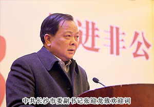中共長沙市委副書記張迎龍致歡迎詞,提出借十八大成功召開的良好勢頭,2013年非公有制經(jīng)濟將進入一個新的、難得的發(fā)展機遇期。希望全市工商界企業(yè)家牢牢把握發(fā)展大勢,大展宏圖,做大做強,回報社會,造福于民。