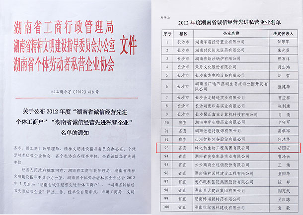“2012年度全省誠(chéng)信經(jīng)營(yíng)先進(jìn)單位”評(píng)選活動(dòng)自2012年7月活動(dòng)啟動(dòng)以來(lái),綠之韻集團(tuán)高度重視,積極參與年度評(píng)選,經(jīng)省評(píng)選領(lǐng)導(dǎo)小組辦公室嚴(yán)格初審,省評(píng)審委員會(huì)認(rèn)真復(fù)審,媒體公示,并報(bào)經(jīng)湖南省人民政府批準(zhǔn),綠之韻集團(tuán)被光榮授予2012年度“湖南省誠(chéng)信經(jīng)營(yíng)先進(jìn)私營(yíng)企業(yè)”稱(chēng)號(hào)。綠之韻集團(tuán)董事、常務(wù)副總裁勞嘉表示,誠(chéng)信就是競(jìng)爭(zhēng)力、誠(chéng)信就是市場(chǎng),誠(chéng)信就是財(cái)富。誠(chéng)信是立身之本,誠(chéng)信是生產(chǎn)力,不講誠(chéng)信者無(wú)足之地。新的一年,將是綠之韻集團(tuán)大踏步的一年,公司將在省委、省政府及各級(jí)主管部門(mén)的正確領(lǐng)導(dǎo)下,繼續(xù)打造誠(chéng)信經(jīng)營(yíng)示范性私營(yíng)企業(yè),狠抓管理,依法經(jīng)營(yíng),誠(chéng)實(shí)守信,走好綠路子、做個(gè)好樣子、打造金牌子,并在業(yè)態(tài)調(diào)整、市場(chǎng)規(guī)劃和公益慈善等多個(gè)方面加大力度,真情服務(wù)消費(fèi)者,打造百年基業(yè)!