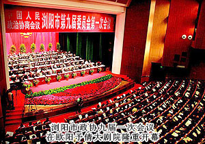 2012年11月24日,政協(xié)瀏陽市第九屆委員會第一次會議在歐陽予倩大劇院隆重開幕。新一屆市政協(xié)委員聚集一堂,圍繞促進瀏陽科學發(fā)展、跨越發(fā)展積極建言獻策,認真履行政治協(xié)商、民主監(jiān)督、參政議政的職能。