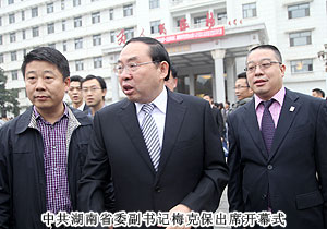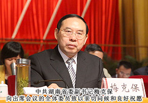 開幕式前,中共湖南省委書記、省人大常委會(huì)主任周強(qiáng),湖南省人民政府省長(zhǎng)徐守盛,中共湖南省委副書記梅克保,中共湖南省委常委、省軍區(qū)政委李有新,中共湖南省委常委、省委秘書長(zhǎng)易煉紅,湖南省人大常委會(huì)副主任陳叔紅,省政府副省長(zhǎng)韓永文,省政協(xié)副主席王曉琴等領(lǐng)導(dǎo)親切接見全體青聯(lián)委員并合影留念。省委副書記梅克保出席開幕式并做重要講話。梅克保指出,實(shí)踐證明,當(dāng)代湖南青年是值得信賴、堪當(dāng)重任、大有希望的一代。今后五年,是我省全面建設(shè)小康社會(huì)、加快推進(jìn)現(xiàn)代化進(jìn)程的關(guān)鍵時(shí)期。省第十次黨代會(huì)科學(xué)描繪了湖南未來五年改革發(fā)展的宏偉藍(lán)圖,提出了“四化兩型”的總戰(zhàn)略和“兩個(gè)加快、兩個(gè)率先”的總?cè)蝿?wù)。實(shí)現(xiàn)這一目標(biāo)任務(wù)是全省人民的共同心愿,也需要全省人民團(tuán)結(jié)一心、奮力拼搏。我省青年作為其中最富朝氣最具前途的重要群體,更是義不容辭、責(zé)無旁貸。