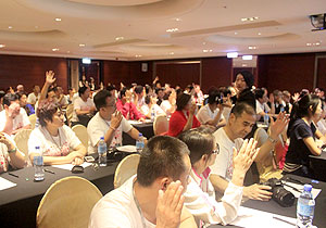 “他山之石,可以攻玉?!敝鸩竭~向成功巔峰的綠之韻人總是以謙虛的姿態(tài)不斷學(xué)習(xí)著。在本次旅途中,一場(chǎng)震撼思想的研討會(huì)為臺(tái)灣之旅賦予了更生動(dòng)的靈魂。臺(tái)灣地區(qū)營(yíng)銷管理大師張力中先生與伙伴們零距離交流,傳授發(fā)人深省的拼搏之道,為人之本。讓伙伴們?cè)趯W(xué)習(xí)與分享中,取思想精華,積蓄騰飛力量。