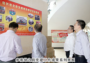 在調(diào)研中,彭繼球主席一行詳細了解了綠之韻的經(jīng)營現(xiàn)狀及遠景規(guī)劃,參觀了產(chǎn)品形象展廳,對“清調(diào)補衡”的產(chǎn)品理念及利稅、公益等企業(yè)公民行為給予高度評價。在綠之韻黨支部黨建工作成果系列展板前,彭繼球主席一行停下腳步,就公司黨建工作與胡國安董事長進行了交流。作為非公經(jīng)濟企業(yè)優(yōu)秀基層黨組織,綠之韻黨支部積極扶危濟困,德行并重,發(fā)展企業(yè),回饋社會。連續(xù)多年取得的黨建成果,受到了考察組一行的高度贊揚。彭繼球主席重點指出:綠之韻黨支部在黨員隊伍的建設(shè)、發(fā)展教育管理、服務(wù)企業(yè)健康發(fā)展、為黨凝聚職工群眾等方面都做了大量的、有特色、有實效的工作,取得了明顯的成績。希望綠之韻黨支部在今后的工作中,進一步完善機制,加強領(lǐng)導(dǎo),在推動企業(yè)發(fā)展、服務(wù)群眾、凝聚人心、促進和諧方面發(fā)揮出重要的作用。