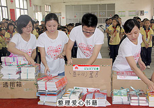 “我有一個夢想,在一個書香四溢的房間,伴著文字自由的起舞;我有一個夢想,能夠每時每刻,在知識的海洋里遨游;我有一個夢想,能夠與同學們在一起,閱讀著喜歡的書快樂地成長……”這是綠之韻工業(yè)園希望小學五年級二班一個孩子的夢想。2012年5月30日,在“六一”兒童節(jié)即將到來之際,帶著為孩子們圓夢的使命,綠之韻慈善基金、綠之韻黨支部帶領(lǐng)愛心志愿者來到綠之韻工業(yè)園希望小學,開展“綠韻圓夢?書香助學”流動圖書館捐贈愛心活動,綠之韻首家校園愛心“流動圖書館”正式成立!