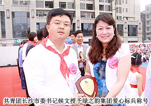 2012年5月26日,第三屆“杜鵑花開?情滿星城”大型公益活動在長沙青少年文化宮舉行。本次活動由長沙市委組織部、市委宣傳部、市文明辦、市少工委、團(tuán)市委、市教育局、《長沙晚報》報業(yè)集團(tuán)、市廣播電視臺聯(lián)合舉辦,市青少年宮、市青基會共同承辦。團(tuán)省委副書記羅瓊、副市長、市少工委主任夏建平等與200多名孤殘兒童、特困農(nóng)村留守兒童、農(nóng)民工子女提前慶祝六一兒童節(jié)。綠之韻集團(tuán)慈善基金捐贈十萬元愛心款項定向幫扶孤苦兒童、留守兒童。綠之韻集團(tuán)董事常務(wù)副總裁勞嘉女士代表公司參與此次活動并接受“愛心標(biāo)兵”榮譽(yù)牌匾。