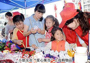 本次活動約有近2000名長沙市民參加,奉獻(xiàn)自己的愛心。一元錢買個掏耳勺、200元拿走一盒咸鴨蛋……來自四面八方的孩子把自己帶來的手工制品、家鄉(xiāng)特產(chǎn)等擺放在展臺上,由參加活動的愛心人士現(xiàn)場“購買”。勞嘉副總裁也在活動現(xiàn)場為綠之韻正在籌辦舉行的“綠韻圓夢?書香助學(xué)”愛心圖書捐贈活動挑選適合小朋友看的書籍。在家人的幫助下,一位坐著輪椅的老爺爺很高興地來“趕集”。當(dāng)看到瀏陽市丁家小學(xué)的孩子們親手制作的石蘭花盆景后,他第一個買走了一盆花。當(dāng)孩子們希望他留下名字時,老先生揮一揮手笑著拒絕了,只寫了“愛心人士”幾個字。