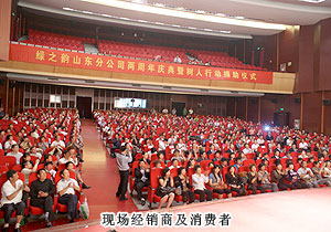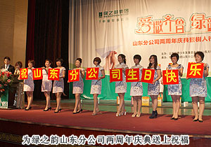2012年5月16日,綠之韻山東分公司“愛撒齊魯,綠韻山東”兩周年慶典暨“樹人行動(dòng)”愛心捐助活動(dòng)在濟(jì)南梨園大戲院隆重舉行。綠之韻集團(tuán)執(zhí)行總經(jīng)理龔振、副總經(jīng)理何健,華東區(qū)域業(yè)務(wù)總監(jiān)梅其慧、業(yè)務(wù)經(jīng)理譚紅,山東分公司副經(jīng)理孫自智以及鞏春華、張美華、范桂春、張吉慶、譚佃選、申文高、馬光祿、朱建昌、臧延福、徐繼法、高玉霞、李家勇、曹穎、劉玉榮、陳培英等優(yōu)秀經(jīng)銷商出席。數(shù)百名綠之韻伙伴共同分享山東分公司不斷發(fā)展、走向成功的喜悅,展望山東綠之韻事業(yè)的美好未來(lái)。