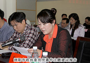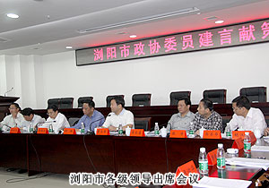 2012年4月25日,瀏陽市政協(xié)委員建言獻策會議成功召開。各界政協(xié)委員直接對話中共瀏陽市委、市政府、市政協(xié)及環(huán)保局、勞動局、財政局、林業(yè)局等相關職能部門代表,為瀏陽跨越發(fā)展、產(chǎn)業(yè)提升、農(nóng)民增收、環(huán)境整治、民生改善、人才培育等有關問題建言獻策。