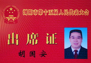 2011年12月26日,瀏陽市第十五屆人民代表大會第六次會議在歐陽予倩大劇院隆重開幕。瀏陽市人民政府市長曹立軍、中共瀏陽市委副書記吳震、瀏陽市政協(xié)主席魯建文、中共瀏陽市委常委、紀(jì)委書記黃陽等各級領(lǐng)導(dǎo)出席會議。瀏陽市第十五屆人大代表、綠之韻集團董事長胡國安出席,與來自全市各地的近400名人大代表共同為瀏陽市的發(fā)展建言獻策。