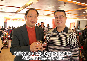 2011年12月16日上午,“央媒?湘企”深化“走轉(zhuǎn)改”座談會(huì)暨“御品德山懷”央媒好新聞?lì)C獎(jiǎng)儀式在長(zhǎng)沙普瑞溫泉大酒店舉行,來自中央70多家新聞單位駐湘記者站的100余名媒體負(fù)責(zé)人、記者、近20名湘企代表匯聚一堂,共同為深化新聞單位“走基層、轉(zhuǎn)作風(fēng)、改文風(fēng)”活動(dòng)進(jìn)行探討。原湖南省政協(xié)主席、中央新聞單位駐湘記者分會(huì)榮譽(yù)會(huì)長(zhǎng)王克英,湖南省委副秘書長(zhǎng)、省委宣傳部副部長(zhǎng)李發(fā)美,省委副秘書長(zhǎng)、省政府新聞辦主任孔和平等領(lǐng)導(dǎo)出席儀式并為獲獎(jiǎng)?wù)哳C獎(jiǎng)。綠之韻集團(tuán)胡國(guó)安董事長(zhǎng)應(yīng)邀出席會(huì)議并與在座媒體代表及各企業(yè)家展開座談?dòng)懻摗?/span>