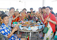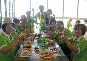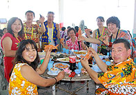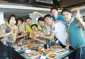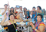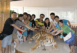 泰國(guó)是“千佛之國(guó)”,全國(guó)大大小小的廟宇有30000多座,95%的人都是非常虔誠(chéng)的佛教徒,在這個(gè)文明古國(guó),泰國(guó)人民的真誠(chéng)、樸實(shí)、憨厚,給世界游客留下了深刻的印象?;锇閭円踩豚l(xiāng)隨俗,向?qū)в螌W(xué)起了泰國(guó)話,“薩瓦迪卡”成為了伙伴們彼此問(wèn)候的口頭禪。