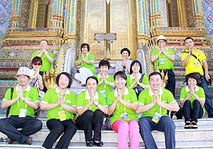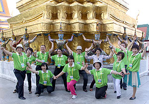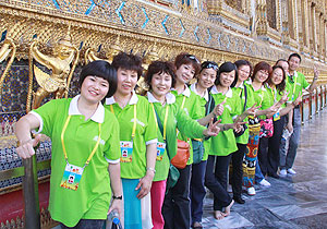 優(yōu)美迷人的亞熱帶風(fēng)光、廣博的佛教文化、獨(dú)有的民間風(fēng)俗,使泰國(guó)蜚聲海外,吸引著世界各地的游客觀光旅游,這里古老的寺廟香火旺盛,獨(dú)特的民族文化妖嬈萬(wàn)分。每一年,都會(huì)有綠之韻精英踏上這片熱土,接過(guò)夢(mèng)想的接力棒,向世界展示綠之韻的風(fēng)采……2011年11月19日—24日,在綠之韻集團(tuán)總裁助理兼企劃教育總監(jiān)何健的帶領(lǐng)下,近100名綠之韻精英與員工跨上了浪漫的泰國(guó)之旅。