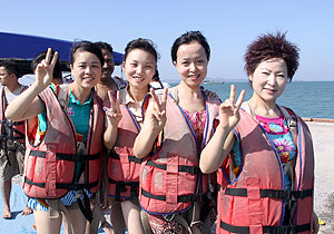 在長(zhǎng)達(dá)40公里的芭堤雅海灘上,綠之韻的伙伴們?nèi)宄扇旱赝嫠螋[,遠(yuǎn)處藍(lán)天碧水,沙白如銀,椰林茅亭,小樓別墅掩映在綠葉紅瓦之間,一派東方熱帶獨(dú)特風(fēng)光,令人心曠神怡。同時(shí),海上滑水、沖浪、滑降落傘等水上娛樂(lè)活動(dòng)新奇刺激,在海灘南端的可蘭島還可乘坐透明長(zhǎng)底透明長(zhǎng)尾船欣賞海底五光十色的珊瑚奇景和熱帶魚(yú),一切都浪漫至極。