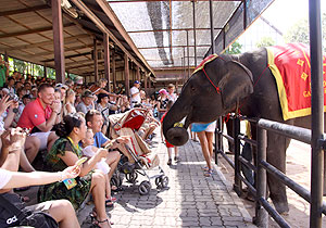 在這里,我們參觀了大皇宮、玉佛寺,游覽了湄南河、東芭樂(lè)園,騎大象、喂鱷魚(yú)、戰(zhàn)毒蛇,每一個(gè)行程都刺激著伙伴們貪玩的細(xì)胞,大家暢游曼谷,開(kāi)懷大笑,統(tǒng)一身著綠之韻文化衫的伙伴無(wú)意間成為了曼谷街頭一道亮麗的風(fēng)景線。