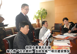 2011年11月23日,長(zhǎng)沙市委統(tǒng)戰(zhàn)部常務(wù)副部長(zhǎng)劉映群,市委督辦專員、市委統(tǒng)戰(zhàn)部調(diào)研員吳忠祥一行蒞臨綠之韻集團(tuán)考察調(diào)研,就綠之韻“萬企聯(lián)村,共同發(fā)展”省級(jí)優(yōu)秀示范項(xiàng)目建設(shè)進(jìn)行工作指導(dǎo),綠之韻集團(tuán)董事長(zhǎng)胡國(guó)安、董事常務(wù)副總裁勞嘉陪同考察。