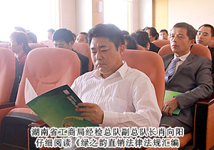 學習的過程中,綠之韻集團總裁助理兼企劃教育總監(jiān)何健就公司目前所展開的直銷法律法規(guī)學習研討會進行了介紹,并對湖南省工商部門一直以來“送法上門”的學習方式表示由衷的感謝。隨后,湖南省工商局經(jīng)檢總隊副總隊長肖向陽主持展開兩個《條例》學習專題講座,首先講述了兩個《條例》立法的意義,表明了政府打擊傳銷的態(tài)度,并對綠之韻集團及營銷人員一直以來配合國家兩個《條例》,規(guī)范經(jīng)營的行為進行了表揚。同時希望綠之韻營銷人員能繼續(xù)起好模范帶頭作用,促進直銷行業(yè)的健康發(fā)展。近兩個小時的學習結(jié)束后,在場的每一位經(jīng)銷商都感覺不虛此行,一名衡陽地區(qū)的經(jīng)銷商表示:“這次學習我收獲了很多,對直銷有了更深層次的認識,綠之韻是屬于我們大家的事業(yè),守護它的商譽我們責無旁貸,在今后的工作過程中我將更加嚴格貫徹國家相關(guān)法律政策,一如既往的自律經(jīng)營,為開創(chuàng)綠之韻的百年基業(yè)努力奮斗。”
