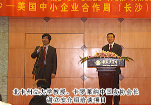 此次對接洽談主要目的是進一步推動長沙――美國中小企業(yè)合作周項目的落實,促進湖南與北卡洲全面開展民間經(jīng)濟外交,推進湖南與北卡洲簽訂的友好省州協(xié)議內(nèi)容。自2010年6月13日,湖南省委常委、常務(wù)副省長于來山在長沙會見美國北卡州商務(wù)廳廳長基恩?克里斯科,雙方簽訂《貿(mào)易和經(jīng)濟發(fā)展合作諒解備忘錄》以來,湖南已與美國北卡州結(jié)成生物醫(yī)藥技術(shù)戰(zhàn)略合作聯(lián)盟。今年9月中下旬,在北卡州舉行的“長沙――美國中小企業(yè)合作周”活動,讓中美雙方有了更深的了解和進一步合作的意愿。