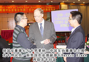 為落實周強書記在北京出席中美州長對話會議關(guān)于“開創(chuàng)中美省州地方合作新未來”的精神,推進湖南與北卡州簽訂的友好省州協(xié)議內(nèi)容,促進湖南與北卡州全面開展民間經(jīng)濟外交,2011年10月20日下午,長沙—美國中小企業(yè)合作周(長沙)項目對接洽談會在華天大酒店召開,由卡羅萊納—中國友協(xié)董事會主席,北卡州議員,原美國農(nóng)業(yè)部副部長Harris Blake為團長率領(lǐng)的美國北卡經(jīng)貿(mào)及友好交流訪問團成員來長與長沙企業(yè)家對接洽談。長沙市政協(xié)副主席、市工商聯(lián)主席彭繼球,市僑聯(lián)副主席翁少蘭等領(lǐng)導(dǎo)出席了對接洽談。繼九月訪美赴北卡州考察與美方企業(yè)有過初步對接后,此次綠之韻集團胡國安董事長再次應(yīng)邀出席合作洽談會并對北卡州龐達地產(chǎn)總裁Mark Herman想建第一座中國城的項目積極關(guān)注。