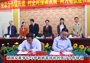 2011年10月16日,由中共湖南省委統(tǒng)戰(zhàn)部、長沙市工商聯(lián)舉辦的“黨派合作促共建,村企對接謀發(fā)展,兩為幫扶建和諧”簽約儀式在瀏陽革命老區(qū)——胡耀邦總書記故里中和鎮(zhèn)召開。中共湖南省委統(tǒng)戰(zhàn)部副部長唐建、長沙市政協(xié)副主席、民建長沙市委主委段安娜、長沙市政協(xié)副主席、市工商聯(lián)主席彭繼球、中共長沙市委統(tǒng)戰(zhàn)部常務(wù)副部長劉應(yīng)群等出席簽約儀式。綠之韻集團(tuán)董事長胡國安作為長沙市工商聯(lián)副主席積極參與“村企對接工作”與瀏陽市中和鎮(zhèn)簽訂村企對接簽約,規(guī)劃在當(dāng)?shù)亟ㄔO(shè)2000畝紫錐菊、蘆薈、黃芪中藥材基地。據(jù)悉,這是綠之韻集團(tuán)“萬企聯(lián)村”萬畝中藥材基地建設(shè)項(xiàng)目繼益陽、郴州之后第三個(gè)選址點(diǎn)。