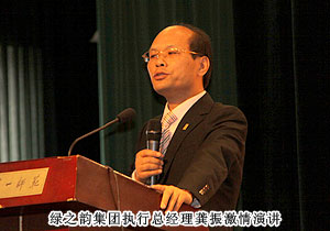 綠之韻集團(tuán)執(zhí)行總經(jīng)理龔振發(fā)表了“我的夢(mèng)想我的未來”主題演講,龔總圍繞大學(xué)生息息相關(guān)的事務(wù),以簡(jiǎn)單事例概括出深刻的道理,讓學(xué)子們深刻體會(huì)夢(mèng)想的力量。演講最后,龔總與在場(chǎng)大學(xué)生共又重溫毛澤東詩詞《沁園春?雪》,“北國(guó)風(fēng)光,萬里雪飄……”將會(huì)場(chǎng)帶回了偉人昔日慷慨激昂的崢嶸歲月,讓學(xué)子們堅(jiān)定自己的夢(mèng)想,為美好的未來努力奮斗!