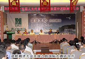 2011年8月22日下午,為使選民更多地了解人大代表的履職情況,并使代表接受選民的監(jiān)督,在瀏陽市人大常委會的部署下,首屆瀏陽市第十五屆人大代表園區(qū)代表述職測評大會在綠之韻國際大酒店召開。瀏陽市人大副主任尋愛國、瀏陽市人大聯(lián)工委會主任鄧立波、中共瀏陽市委副調研員楊國民、瀏陽市文化館館長邱承慈等領導出席測評大會。