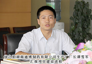 2011年8月15日,就綠之韻集團(tuán)申報(bào)“綠之韻湖南益陽萬畝中藥材種植加工市場(chǎng)營(yíng)銷項(xiàng)目”為“萬企聯(lián)村,共同發(fā)展”活動(dòng)省級(jí)示范項(xiàng)目事宜,在中共湖南省委統(tǒng)戰(zhàn)部經(jīng)濟(jì)處處長(zhǎng)肖玲玲、湖南省工商聯(lián)扶貧處處長(zhǎng)甘露的帶領(lǐng)下,“萬企聯(lián)村,共同發(fā)展”考察小組蒞臨綠之韻集團(tuán)調(diào)研。董事長(zhǎng)助理戴曉彥、綠之韻湖南迪博制藥有限公司生產(chǎn)廠廠長(zhǎng)、益陽中藥材種植基地負(fù)責(zé)人譚雪軍匯報(bào)項(xiàng)目建設(shè)進(jìn)程。