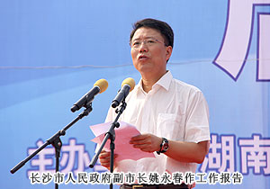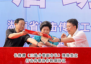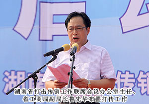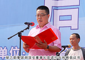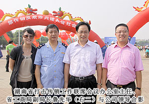 活動現(xiàn)場,湖南省打擊傳銷工作聯(lián)席會議總召集人、湖南省人民政府副省長劉力偉,湖南省打擊傳銷工作聯(lián)席會議召集人、省工商局局長劉國湘,以及省打擊傳銷工作聯(lián)席會議成員單位領導和相關處室負責人,省工商局打擊傳銷工作領導小組成員單位負責人,長沙市人民政府、株洲市人民政府、湘潭市人民政府主管打傳工作副市長,長沙縣工商、公安機關執(zhí)法人員代表,企業(yè)、社區(qū)、學生代表,各大媒體記者共計2000余人參與活動。湖南省打擊傳銷工作聯(lián)席會議辦公室主任、省工商局副局長魯先華、湖南省公安廳經(jīng)偵總隊副總隊長劉岳斌分別就湖南省打擊傳銷工作取得的成果與進程作報告,長沙市人民政府副市長姚永春作重要工作報告。長株潭打擊傳銷協(xié)作機制簽署協(xié)議現(xiàn)場簽定,綠之韻集團胡國安董事長作為湖南本土唯一一家獲牌直銷企業(yè)代表宣讀打擊傳銷倡議書,并建議將11月1日定為湖南反傳銷宣傳日。