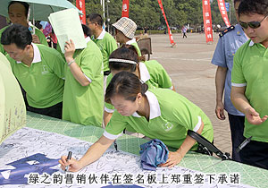 長沙市星沙通程商業(yè)廣場,精彩的表演和直銷法律法規(guī)知識問答吸引了過往行人的駐足觀看。綠之韻營銷伙伴鮮綠的T恤構成了一道亮麗的風景,他們不但自己仔細研讀關于打擊傳銷的宣傳冊,還積極將公司出版的《直銷法律法規(guī)88問》免費向參會人員贈送。隨著,湖南省打擊傳銷工作聯(lián)席會議總召集人、湖南省人民政府副省長劉力偉在會上宣布專項打擊行動正式開始,綠之韻營銷伙伴在湖南省打擊(網(wǎng)絡)傳銷違法犯罪專項行動萬人簽名的巨幅的簽名板上,鄭重地簽下了自己的名字。