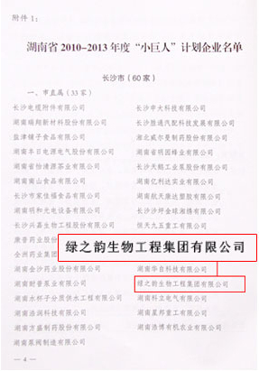 依據(jù)《中華人民共和國中小企業(yè)促進(jìn)法》,并進(jìn)一步貫徹落實(shí)湖南省委、省政府確定的工業(yè)強(qiáng)省戰(zhàn)略,推進(jìn)“四千工程”和“兩型”社會建設(shè)的要求,近日,湖南省經(jīng)濟(jì)和信息化委員會隆重公布了湖南省“小巨人”計劃和“創(chuàng)業(yè)”計劃企業(yè)名單,在長沙市直屬33家“小巨人”計劃企業(yè)中,綠之韻集團(tuán)榜上有名。