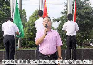 上午九點(diǎn)整,在綠之韻集團(tuán)總部前坪,莊嚴(yán)肅穆的升旗儀式隆重舉行。綠之韻集團(tuán)董事長胡國安、董事常務(wù)副總裁勞嘉率集團(tuán)總部員工、綠之韻國際大酒店員工共同為中國共產(chǎn)黨90華誕獻(xiàn)禮!當(dāng)中華人民共和國國歌奏響,國旗、黨旗、司旗冉冉上升,全體綠之韻人肅然起敬,一種自豪感、驕傲感油然而生。胡國安董事長向偉大的中國共產(chǎn)黨送上誠摯的生日祝福,他說,中國共產(chǎn)黨的發(fā)展歷程艱苦而卓絕,留給了我們一筆取之不盡用之不竭的精神財(cái)富,我們每一位企業(yè)黨員都應(yīng)牢牢記住,時(shí)刻發(fā)揚(yáng)共產(chǎn)黨不怕艱難,勇于進(jìn)取的精神,為祖國的發(fā)展貢獻(xiàn)力量!