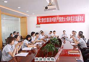 下午,綠之韻黨支部慶祝中國共產(chǎn)黨建立90周年學(xué)習(xí)交流座談會(huì)召開。綠之韻爭先創(chuàng)優(yōu)活動(dòng)小組顧問馮紅、綠之韻黨支部書記許達(dá)仲以及集團(tuán)優(yōu)秀共產(chǎn)黨員、預(yù)備黨員、團(tuán)員、入黨積極分子參加座談會(huì)。會(huì)上,每一位參會(huì)成員進(jìn)行了思想?yún)R報(bào),并投票選舉了兩名在各項(xiàng)活動(dòng)中積極發(fā)揮先鋒模范作用的典型代表羅婷、黃姣為優(yōu)秀共產(chǎn)黨員。綠之韻黨支部書記許達(dá)仲深情回顧了中國共產(chǎn)黨的發(fā)展歷程,他表示:從南湖紅船到八一槍聲,從井岡號(hào)角到長征壯歌,從抗日烽煙到建國大業(yè),從改革春風(fēng)到小康藍(lán)圖,90年波瀾壯闊,90年壯麗輝煌。沒有共產(chǎn)黨,就沒有新中國,我們要緊緊簇?fù)碓阽牭跺N頭圖案的光輝旗幟下,銘記歷史,奮勇前進(jìn)。