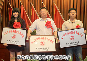 近年來(lái),長(zhǎng)沙市各級(jí)組織和單位緊緊圍繞市委、市政府打造“創(chuàng)業(yè)之都”和創(chuàng)建全國(guó)創(chuàng)業(yè)型城市的總體目標(biāo),以“創(chuàng)業(yè)富民、巾幗示范在行動(dòng)”為載體,積極實(shí)施創(chuàng)業(yè)就業(yè)促進(jìn)行動(dòng),在全市組織開(kāi)展了“巾幗創(chuàng)業(yè)示范基地”、“女大學(xué)生創(chuàng)業(yè)就業(yè)實(shí)踐基地”的評(píng)選活動(dòng)。2011年4月28日,綠之韻集團(tuán)被長(zhǎng)沙市婦女聯(lián)合會(huì)評(píng)選為長(zhǎng)沙市“女大學(xué)生創(chuàng)業(yè)就業(yè)實(shí)踐基地”。中共長(zhǎng)沙市委常委、統(tǒng)戰(zhàn)部長(zhǎng)虢正貴、副市長(zhǎng)何寄華等市級(jí)領(lǐng)導(dǎo)出席本次會(huì)議并頒發(fā)榮譽(yù)牌匾,長(zhǎng)沙市婦聯(lián)黨組書記、主席譚慧慧作工作報(bào)告。