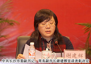 2011年1月22日上午,中共長沙市委、長沙市人民政府主辦的“長沙市第三屆社會主義優(yōu)秀建設(shè)者”表彰大會在長沙市人民會堂隆重舉行。中共湖南省常委、長沙市委書記陳潤兒,中共長沙市委常委、常務(wù)副市長謝建輝,長沙市委常委市人大委員會主任余合泉,中共長沙市委常委、市委統(tǒng)戰(zhàn)部部長虢正貴,長沙市副市長姚永春等省市領(lǐng)導(dǎo)出席表彰大會。