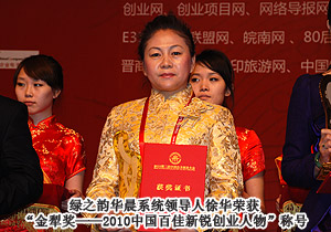 據(jù)了解,本次會議以“促進(jìn)全民創(chuàng)業(yè),以創(chuàng)業(yè)帶動就業(yè)”為核心,隆重推出中國首個為創(chuàng)業(yè)者頒發(fā)的至尊榮譽(yù)獎——“金犁獎”,為奔波在創(chuàng)業(yè)路上的創(chuàng)業(yè)者授以至高的榮譽(yù),使其創(chuàng)業(yè)獲得社會的認(rèn)可、幫助和關(guān)注,增強(qiáng)企業(yè)的社會公信力,提升企業(yè)的品牌形象和知名度,提高個人的行業(yè)標(biāo)準(zhǔn)化水平。淘寶網(wǎng)、北京東研國際集團(tuán)、斐貝國際集團(tuán)有限公司等知名企業(yè)入圍。會上,綠之韻集團(tuán)榮獲“金犁獎——2010中國誠信創(chuàng)業(yè)示范企業(yè)”榮譽(yù)稱號、綠之韻華晨系統(tǒng)領(lǐng)導(dǎo)人徐華榮獲“金犁獎——2010中國百佳新銳創(chuàng)業(yè)人物”榮譽(yù)稱號。主辦方負(fù)責(zé)人表示:本次會議把活動、會議、展覽、論壇、頒獎等各類元素融為一體,讓參會主體及創(chuàng)業(yè)者借助平臺成交項目、整合人才、整合資源、融合智慧,從而更好地樹立創(chuàng)業(yè)精神、激勵創(chuàng)業(yè)激情、推介創(chuàng)業(yè)標(biāo)桿,實現(xiàn)創(chuàng)業(yè)成就人生、創(chuàng)業(yè)成就中國的宏愿。