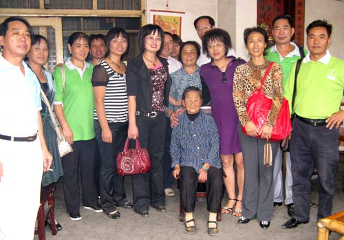 初見老人,一臉和藹的笑容,平靜地端坐在堂屋,見到我們的到來喃喃自語著。聽陳老爺子的兒子解釋說,老人很喜歡熱鬧,見家里來了客人就會打招呼講些客套話,只不過我們外地人一句都聽不懂。新化縣的市場領(lǐng)導(dǎo)人方永菊老師代表公司向陳老爺子奉上了慰問禮金和產(chǎn)品。老人接到禮物更是開心,呵呵的笑出了聲,我知道他感受到了大家對他的關(guān)愛,開心得像個(gè)可愛的孩子。我也興奮地湊到老人的跟前和老人閑聊起來,每一句都需要通過當(dāng)?shù)胤咒N商的“翻譯”。陳老爺子講得最多的就他的子女,講起來滿臉洋溢著驕傲神情。老人有兩兒兩女,在各自所在的行業(yè)都表現(xiàn)得非常優(yōu)秀并取得了不小的成績,這都是深受這位老父親的影響?!罢薄?、“熱情”是我從老人身上學(xué)到的為人之道,“心胸寬廣”是老人得以長壽的根源。