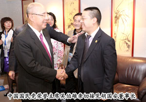 2010年4月6日-8日,素有“直銷界的奧斯卡盛宴”之稱的第六屆亞太直銷論壇在臺灣臺北國際會議中心隆重召開。本屆論壇受到了業(yè)界的關(guān)注及當(dāng)?shù)卣拇罅χС郑瑑砂独硎聠挝还餐帧秲砂稊y手,共創(chuàng)新機》之鑰,為大會活動揭開序幕,大會協(xié)辦單位伯仲文教基金會董事長、中國國民黨榮譽主席吳伯雄先生親臨開幕式并致詞,來自日本、中國、港澳、馬來西亞、印尼、新加坡等12個國和地區(qū)行業(yè)人士;數(shù)十位專家學(xué)者、上百位企業(yè)高管參加了會議。 綠之韻集團董事長胡國安、董事常務(wù)副總經(jīng)理勞嘉、綠之韻迪博制藥生產(chǎn)廠廠長譚雪軍以及綠之韻高層分銷商代表參加了此次活動。作為本次論壇活動的VIP嘉賓,胡國安董事長受到了中國國民黨榮譽主席吳伯雄先生的親切接見。