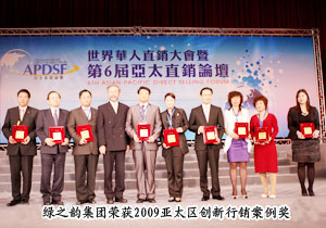 頒獎典禮是論壇的重頭戲,2009亞太區(qū)十佳最具品牌價值企業(yè)等11個獎項各得其主,頒獎典禮盛況空前。綠之韻集團榮獲 “2009亞太區(qū)創(chuàng)新行銷案例獎”,綠之韻藍天系統(tǒng)領(lǐng)導(dǎo)人張吉福榮獲“亞太區(qū)十佳培訓(xùn)講師”稱號。
