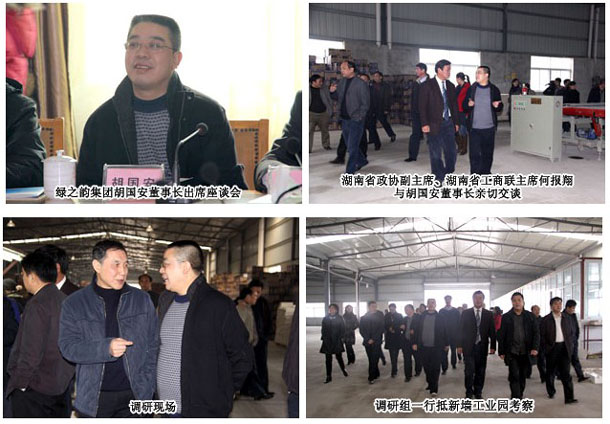 2010年1月4日,在湖南省政協(xié)副主席、湖南省工商聯(lián)主席何報(bào)翔、省工商聯(lián)副主席、黨組成員周柏良的帶領(lǐng)下,省政協(xié)委員、省工商聯(lián)常委、綠之韻集團(tuán)董事長胡國安及湖南省部分知名民營企業(yè)家赴湖南省岳陽縣就招商引資工作進(jìn)行實(shí)地考察。