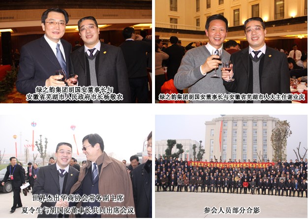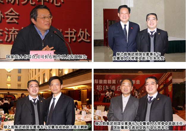 國(guó)際徽商精英年會(huì)是安徽國(guó)際徽商交流協(xié)會(huì)舉辦的一年一度的盛會(huì),前四屆分別在北京、博鰲、無(wú)錫、合肥舉行。今年的徽商精英年會(huì),安徽省委省政府高度重視,以“新徽商、新機(jī)遇、新發(fā)展”為主題,還特別邀請(qǐng)了世界杰出華商協(xié)會(huì)的優(yōu)秀成員出席交流,胡國(guó)安董事長(zhǎng)作為“世界華商協(xié)會(huì)副會(huì)長(zhǎng)”被邀請(qǐng)出席會(huì)議,并在會(huì)議期間與安徽省委領(lǐng)導(dǎo)及蕪湖市委領(lǐng)導(dǎo)進(jìn)行親切會(huì)談。