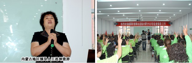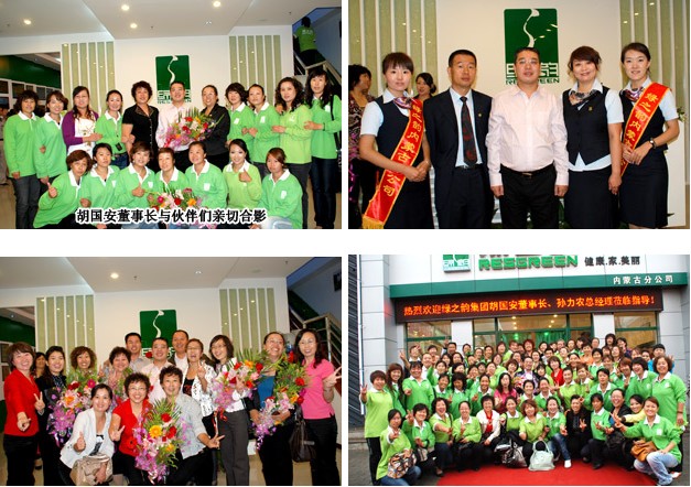 在分公司經(jīng)理侯立新、內(nèi)蒙古地區(qū)領導人王連坤以及幾位主要骨干的陪同下,胡董一行參觀了分公司,分別聽取了分公司負責人及市場領導人的工作匯報與下一步市場的規(guī)劃、展望與運營等,對分公司的籌備及運營給予了充分的肯定和贊許。參觀分公司之后,又舉行了100多位內(nèi)蒙古地區(qū)精英骨干會議。王連坤老師代表內(nèi)蒙古地區(qū)分銷伙伴回顧了6年綠之韻在內(nèi)蒙古的發(fā)展,至動情處熱淚盈眶,激動之情溢于言表。