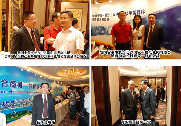 2009年5月18-20日,2009中國(guó)・長(zhǎng)沙(香港)承接產(chǎn)業(yè)轉(zhuǎn)移投資貿(mào)易懇談會(huì)在香港舉行。胡國(guó)安董事長(zhǎng)應(yīng)長(zhǎng)沙市政府邀請(qǐng),出席此次懇談會(huì)。會(huì)上,長(zhǎng)沙代表團(tuán)發(fā)布的總投資達(dá)230.4億美元的80個(gè)重大項(xiàng)目,引起與會(huì)300多位香港各界名流的廣泛關(guān)注。中共長(zhǎng)沙市委副書(shū)記、市長(zhǎng)張劍飛和與會(huì)嘉賓代表共同推動(dòng)了象征加快發(fā)展的“引擎”,喻示著長(zhǎng)沙與香港的經(jīng)貿(mào)合作從此進(jìn)入“快車(chē)道”。
