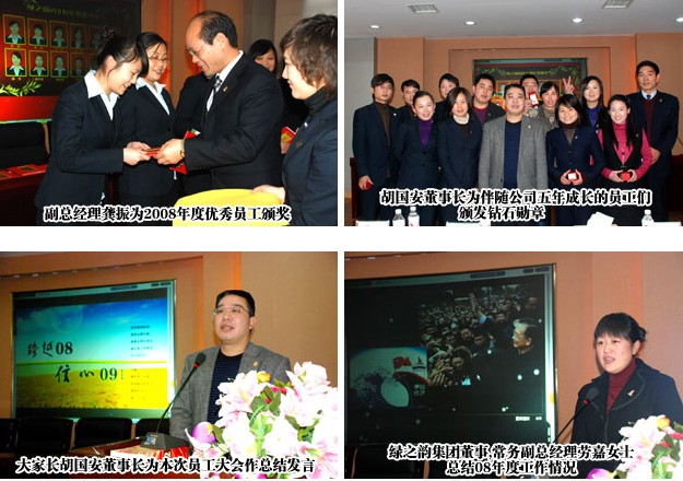 2009年1月20日下午3點(diǎn),綠之韻2008年員工總結(jié)表彰大會(huì)暨新春團(tuán)拜會(huì)在集團(tuán)公司總部隆重舉行。所有綠之韻同仁齊聚一堂,共同回顧不平凡的一年中走過(guò)的輝煌歷程,共同憧憬綠之韻集團(tuán)的美好未來(lái)。