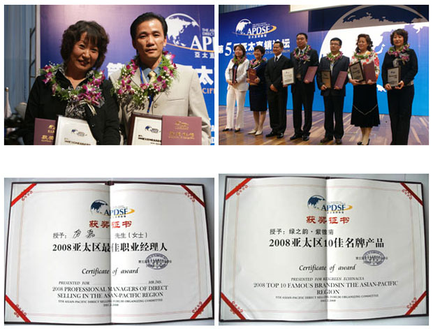 2008年11月30日至12月2日,2008亞太區(qū)無店鋪行業(yè)CEO高峰論壇暨第五屆亞太直銷論壇在廣州白云國際會議中心隆重召開。應(yīng)主辦方的邀請,綠之韻集團(tuán)副總經(jīng)理龔振先生率領(lǐng)公司部分優(yōu)秀分銷商代表參加了此次論壇并榮獲了多項(xiàng)榮譽(yù)稱號。
