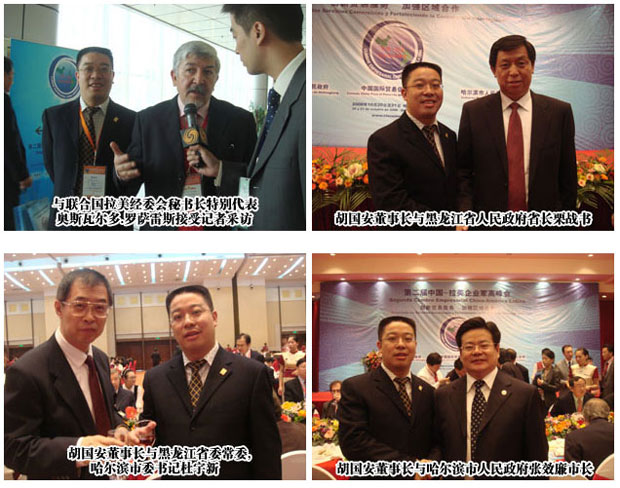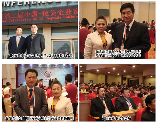 由中國國際貿(mào)易促進(jìn)委員會(huì)、黑龍江省政府、哈爾濱市政府聯(lián)合主辦的第二屆“中國拉美企業(yè)家高峰會(huì)”,20日上午在哈爾濱國際會(huì)議中心環(huán)球劇場(chǎng)開幕。本次峰會(huì)的主題是“創(chuàng)新貿(mào)易服務(wù)、加強(qiáng)區(qū)域合作”,綠之韻集團(tuán)董事長兼總裁胡國安先生及綠之韻黑龍江分公司經(jīng)理徐華女士等應(yīng)邀出席此次峰會(huì)。