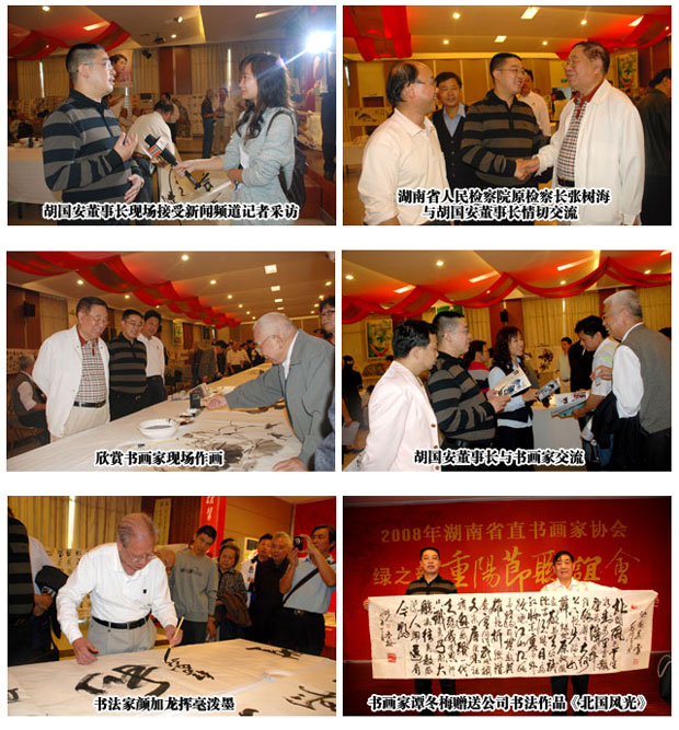 一年一度秋風(fēng)勁,不是春光勝似春光, 金秋時(shí)節(jié),又逢重陽佳節(jié),由綠之韻集團(tuán)舉辦的“湖南省直書畫家協(xié)會(huì)2008年重陽書畫聯(lián)誼會(huì)”于2008年10月5日上午在湖南綠之韻大酒店貴賓樓多功能廳隆重舉行。