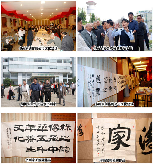 書畫家們?cè)诰G之韻集團(tuán)董事長胡國安的帶領(lǐng)下,首先參觀了綠之韻生物工業(yè)園,胡董事長并向與會(huì)者介紹了近年來公司發(fā)展情況及對(duì)社會(huì)所做的貢獻(xiàn)。之后,書畫家在多功能廳的10米長臺(tái)上揮毫潑墨。人物、山水、花鳥魚蟲頓時(shí)在這些畫家的筆下顯得栩栩如生,書法家們也不示弱,草書、楷書、隸書、篆體等一揮而就,蒼勁飄逸。